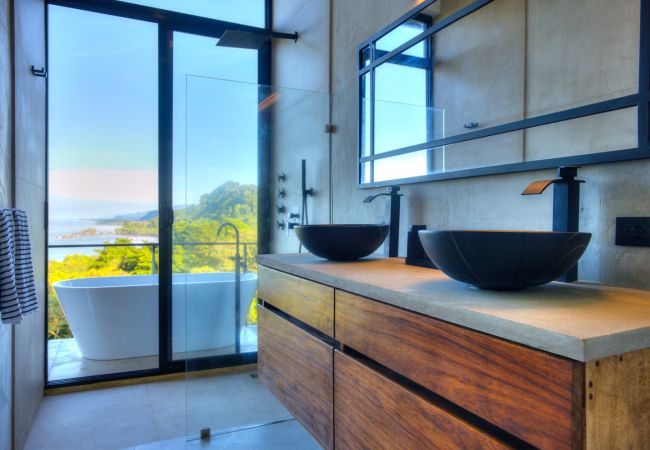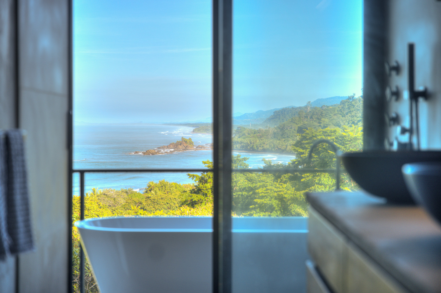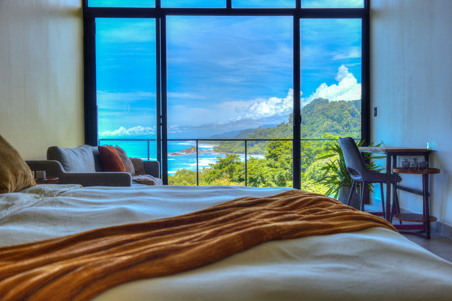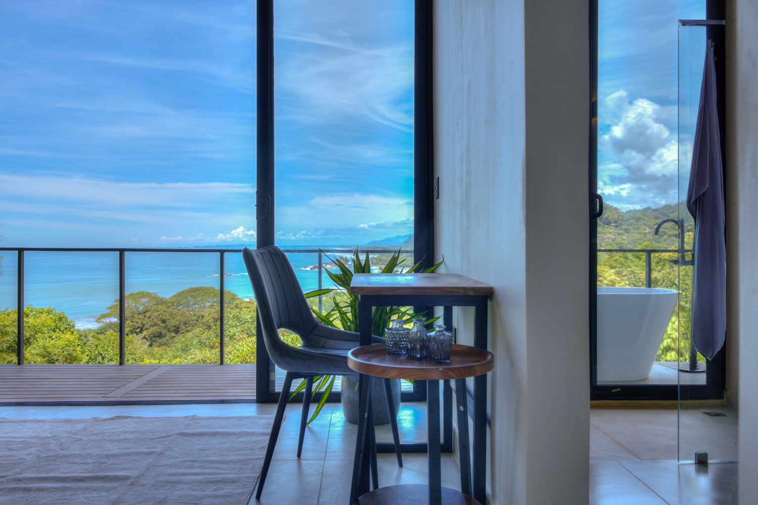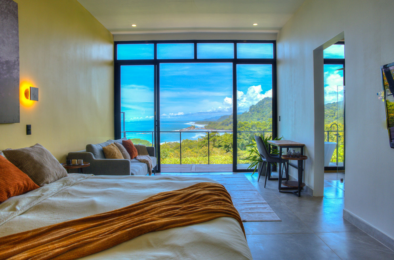 With an extravagant view of the coastline stretching from Dominical Bay to Manuel Antonio, this villa offers a front-row seat to where the jungle meets the rolling waves of the ocean. The dramatic ocean view throughout the villa, the large private pool, the indoor group-size yoga deck, and the unbeatable location within walking distance to the beach and only minutes from town make it an ideal spot for groups of all sizes to enjoy.