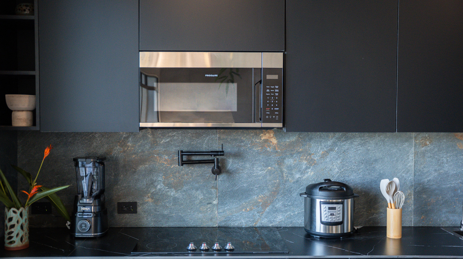 It follows the home's contemporary design while offering state-of-the-art appliances, allowing you to make delicious meals if you dine in the guest house.